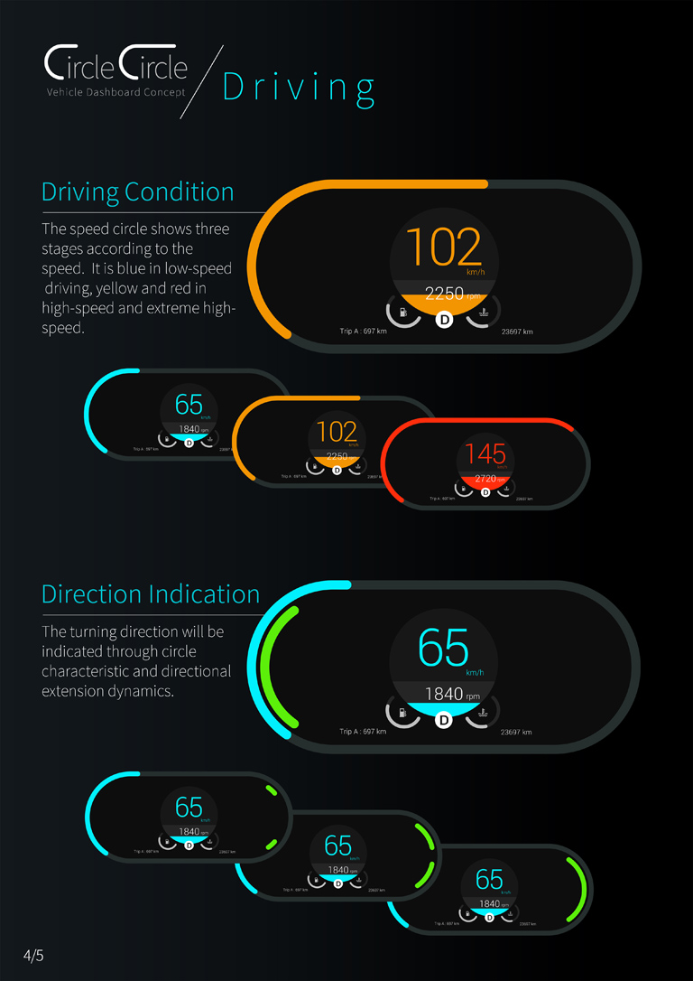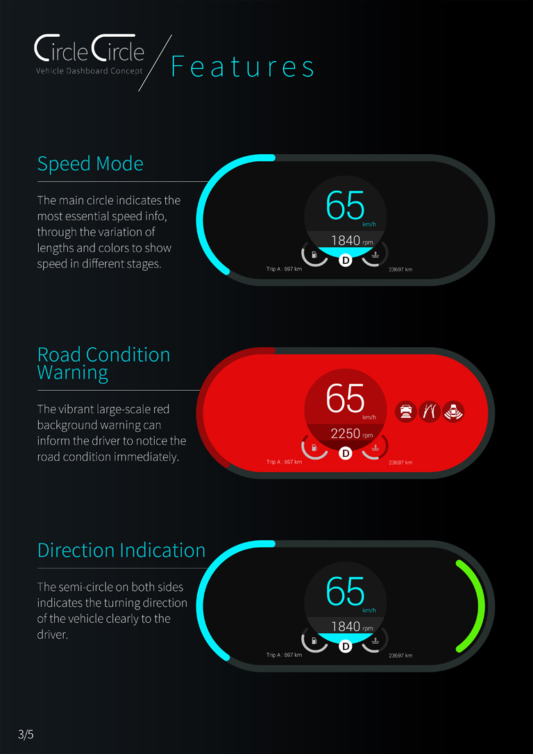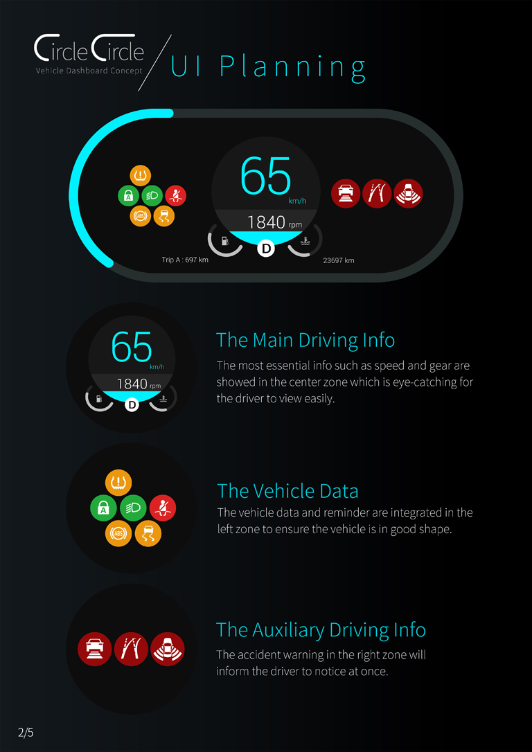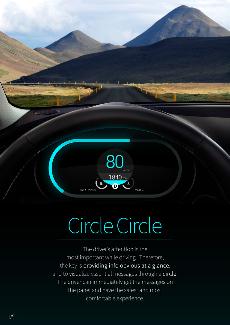 駕駛人的注意力是非常寶貴的資產,因此以「一目了然的資訊提供」為出發點,透過一道環告知當前最重要的事,駕駛人利用眼神餘光即可快速接收儀表板上的訊息,提供最安全舒適的體驗。